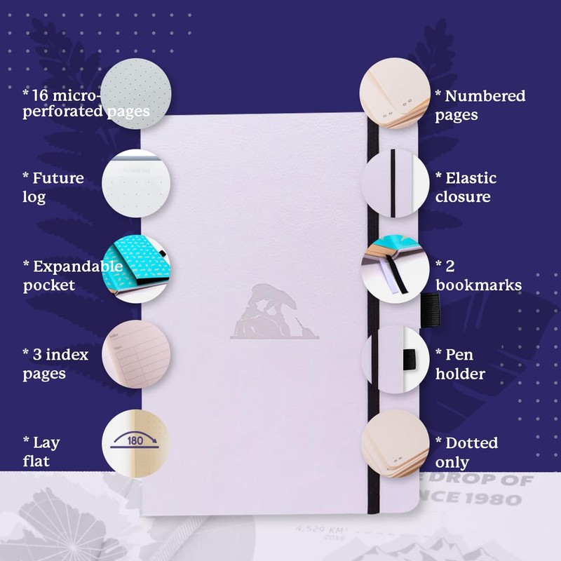 Dingbats - Earth Dotted Medium Notebook, Glicine Arctic, A5 - Hardcover - Cream 100gsm Ink-Proof Paper - Numbered Pages, Index & Key Pages
