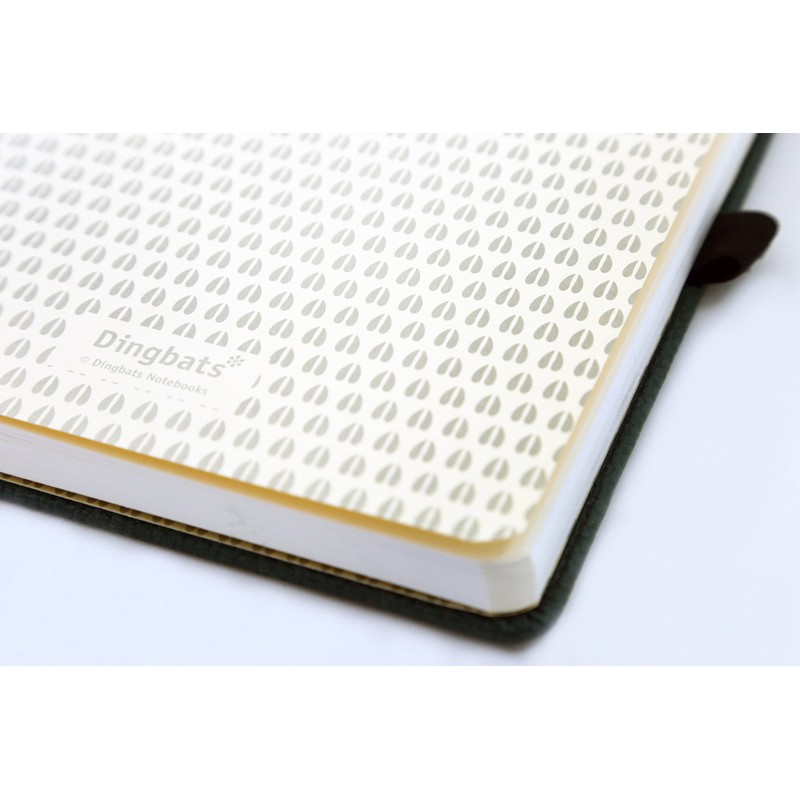 - A5 notebook with many functions: Dingbats notebooks exude quality - this hardcover leather notebook is made of vegan PU leather, micro-perforated cream 100gsm pages, an elastic closure and a pen holder. The notebook is equipped with an animal footprint at the end of the pages and an inner pocket for added detail. It is the perfect gift for your loved ones.