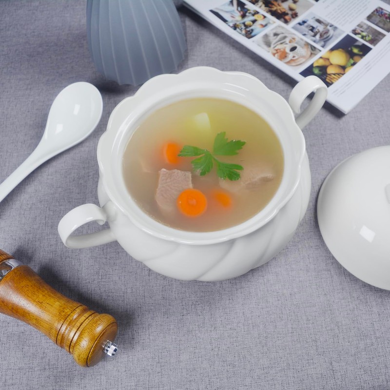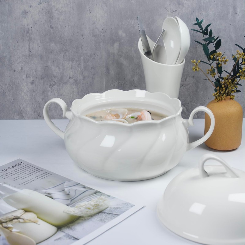 - Multiple Uses In Life: This white crockery soup tureens is suitable for grilling meat, beef, chicken, turkey, bread, Casserole dish, lasagna, pasta, potatoes, mushrooms, vegetables, and more. Can be used for ovens, microwaves, refrigerators, and dishwashers. (Attention: Do not use direct fire and induction cookers.)