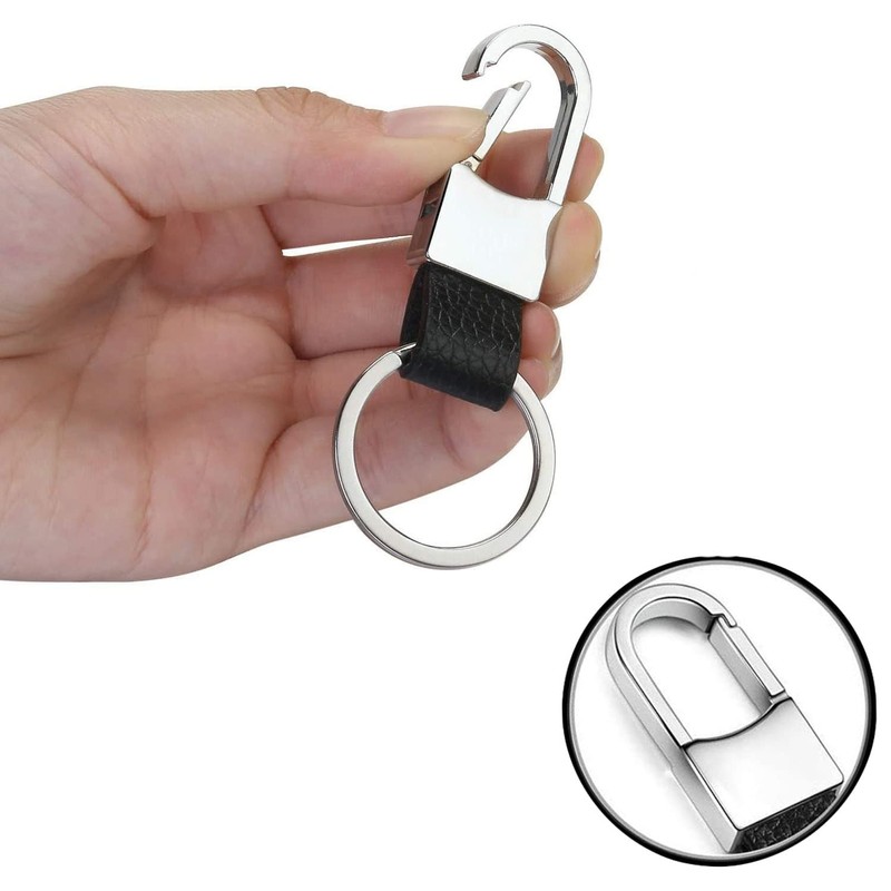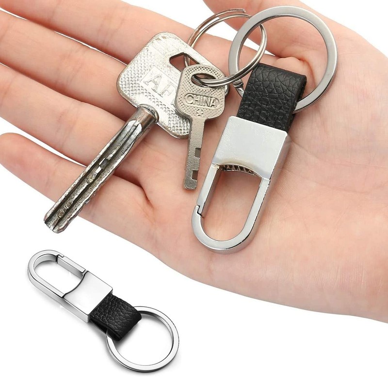DINGFENG Set of 2 key rings, metal leather car key rings, key rings, car key rings, suitable for key fobs, cars, motorcycles, black