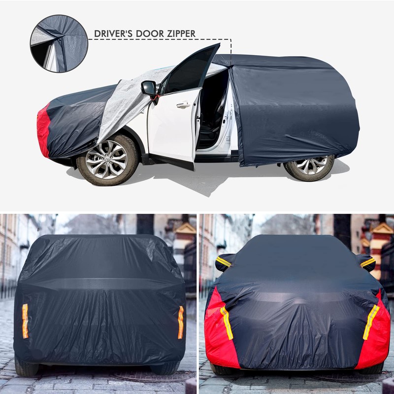 DINGHAO Car Cover Waterproof All Weather for Automobiles, 6 Layers Outdoor Full Exterior Cover Rain Sun UV Snowproof Protection with Zipper Cotton, Mirror Pocket for SUV (191-201 inch)