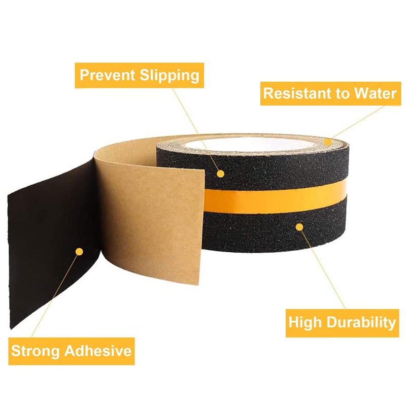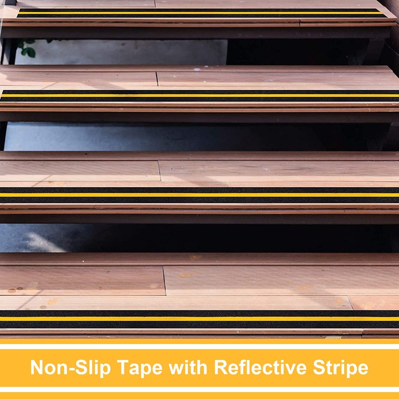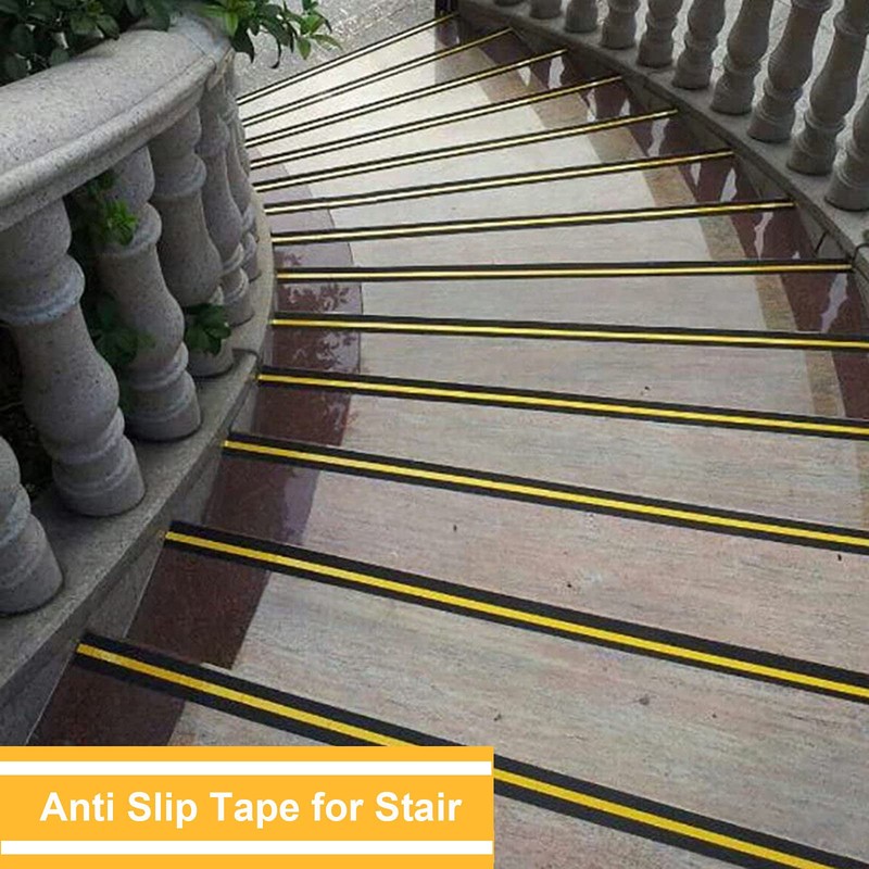 - Self Adhesive Safety Tape Apply & Size : easy to install and work with just peel stick and roll out bubbles. 5cm Width x 5m Length, anti slip tape with yellow reflective strip.