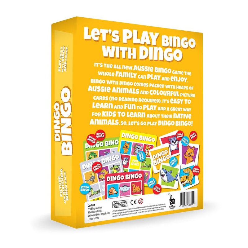 Does your child love learning, does your child love to play? We are massive believers in learning through play at The Fantastic Factory so we have developed Dingo Bingo to enable aussie families to have great fun finding Dingo and his pals in this all australian animal version of Bingo. Come on what are you waiting for pick up a copy and learn all about native australian animals in a super fun way.