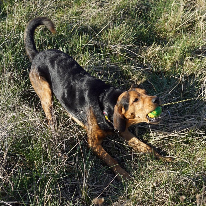 • Always supervise your dog during play and training. Do not allow the dog to chew on the handle. The rubber dog fetching ball was handcrafted in Poland by Dingo