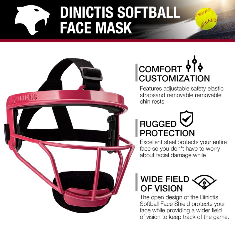 Dinictis Softball Face Mask, Lightweight, Comfortable, with Wide Field Vision, Durable and Safe Face Guards, Premium Protective Softball Fielder's Mask-Red-Youth(M)