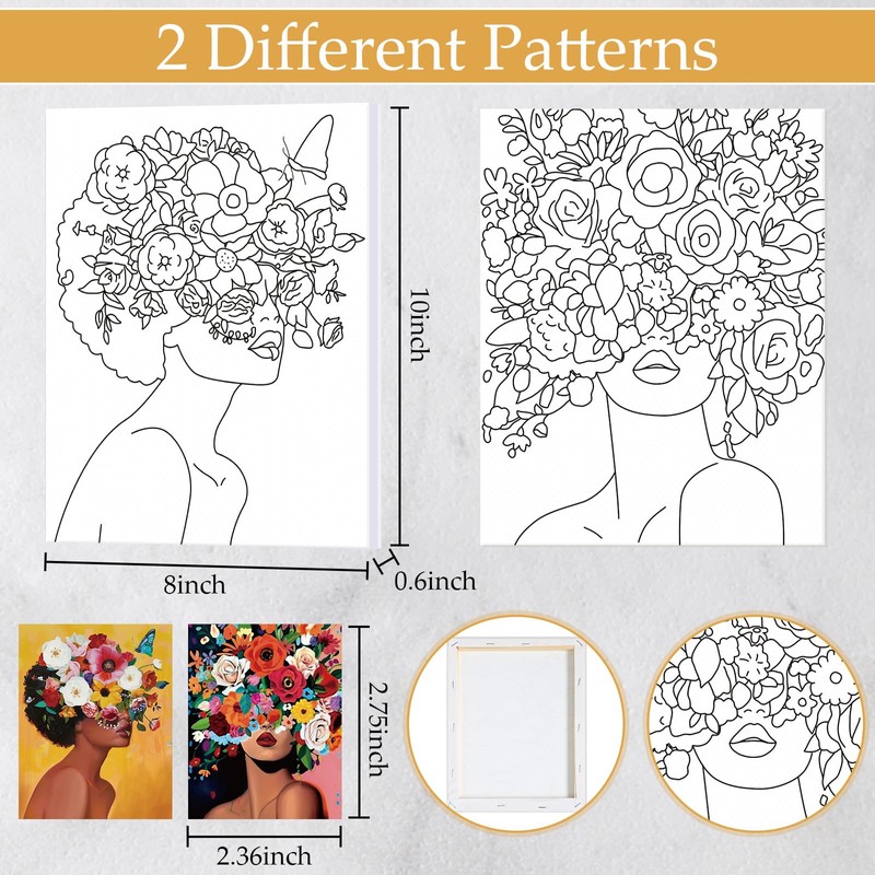 Dinifee 2 Pack Pre Drawn Canvas for Painting for Adults Sip and Paint Kit for Couple 8" x 10" Stretched Pre Printed Canvas for Couples Date Night Valentine Party(Flower Beauty)