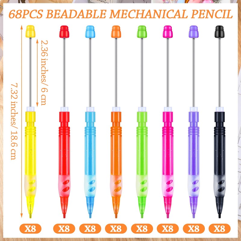 - Abundant Quantity for Varied Use: each package includes 64 beadable mechanical pencils in 8 vibrant colors, 8 for each color; Each pencil contains two refills, you have sufficient quantity to either last a long time or share with friend, ideal for schools, offices, or for personal supplies at home