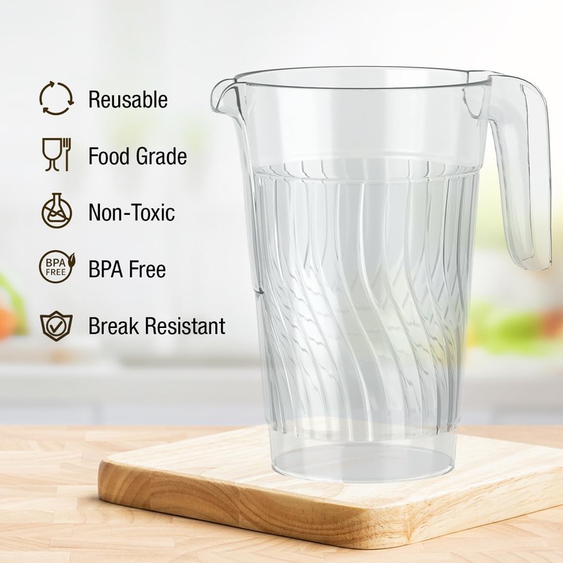 - Versatile Design: Our clear plastic pitcher is perfect for serving water, juice, tea, or any beverage with its elegant and versatile design.