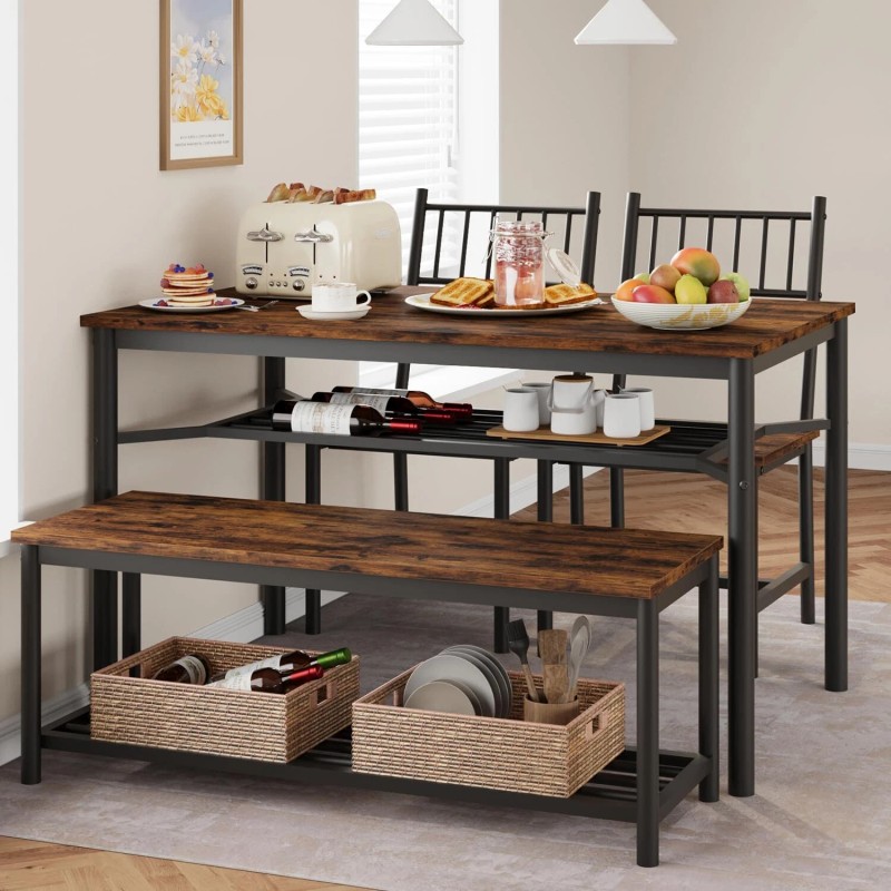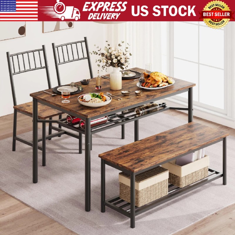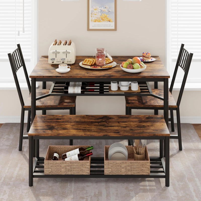 Dining Table Set for 4 Kitchen Table Set with Chairs and Bench Storage Rack Home