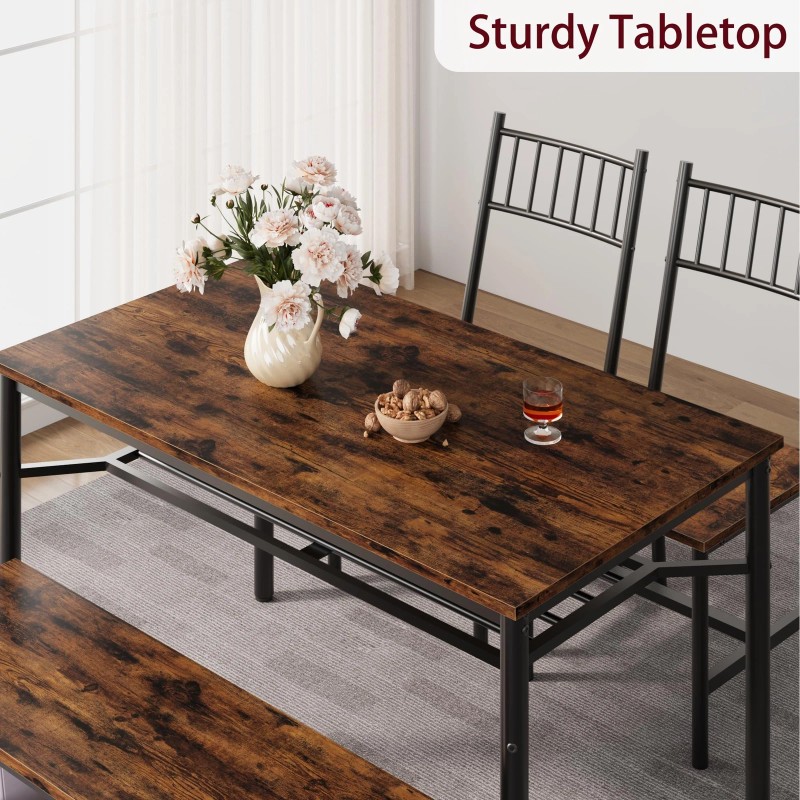 - EASY TO ASSEMBLE AND MAINTAIN: All the assembly hardware and tools come with this kitchen table set. With illustrated instructions, this rustic kitchen table and chair set can be assembled within 45 min without effort. The water-resistant top is bright and clean with just a light wipe of water, making it convenient and easy to clean. It is a perfect choice for your home. Dimensions: Table 47.2” L x 27.5” W x 31.4” H / Chair 15.7” L x 15.3” W x 36.2” H / Bench 41.3” L x 11.8” W x 17.7” H