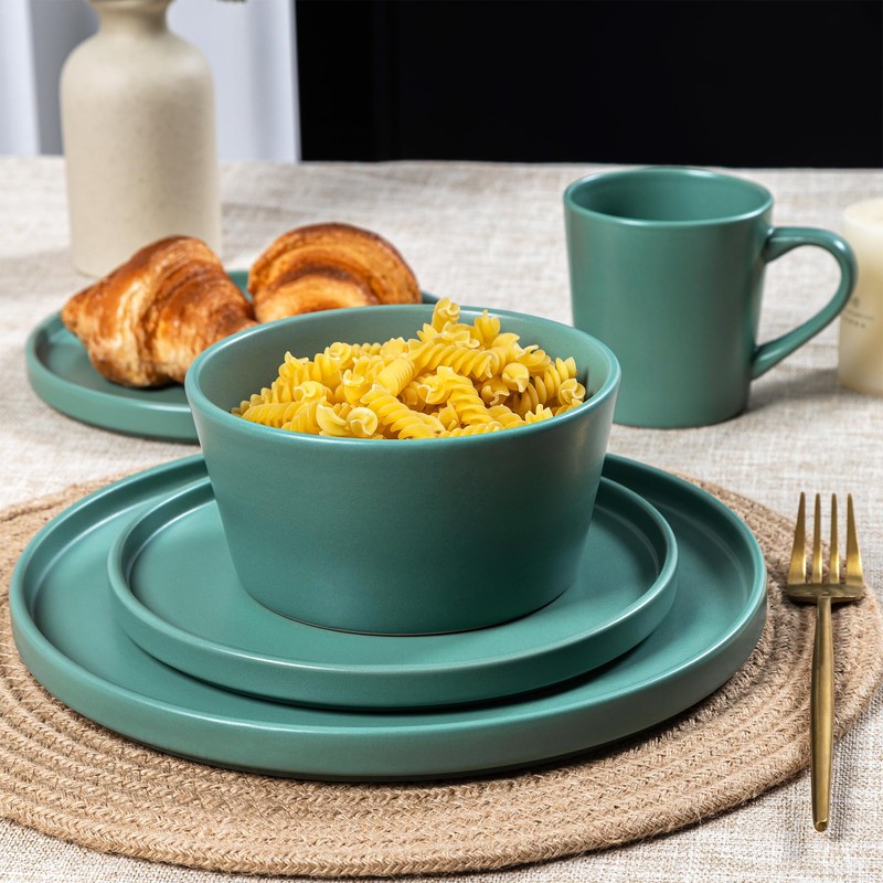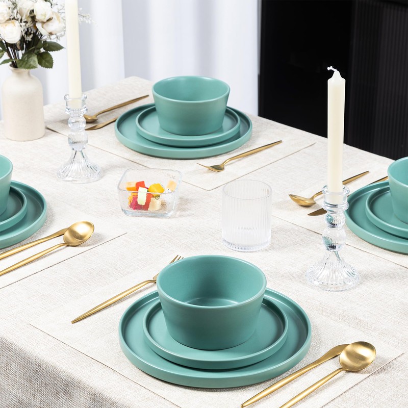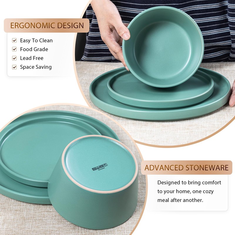 Dinnerware Sets for 4 - CJDC-QUELO 12-Piece Stoneware Plates and Bowls Sets, Ceramic Dishware Sets for Kitchen Use and Formal Dining, Chip and Scratch Resistant Microwave Dishwasher Safe, Green