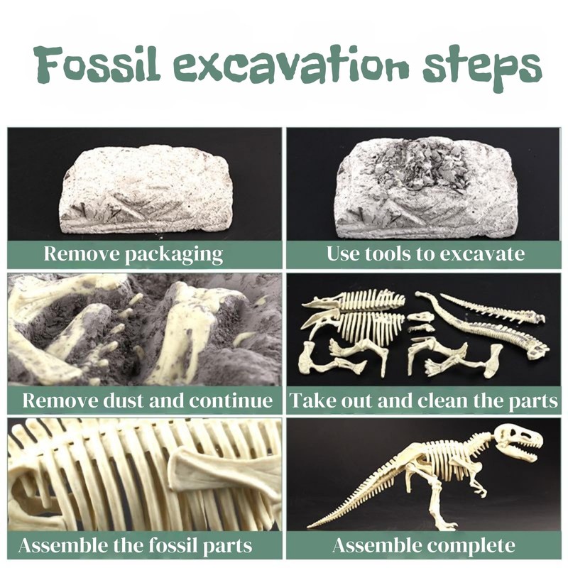 - DISPLAY & COLLECT After all the dinosaur fossils are excavated, children can proudly assemble them or use them as unique decorations. Encourage your children to share their fossil digging kits and new discoveries with family and friends, thus strengthening mutual connectedness.