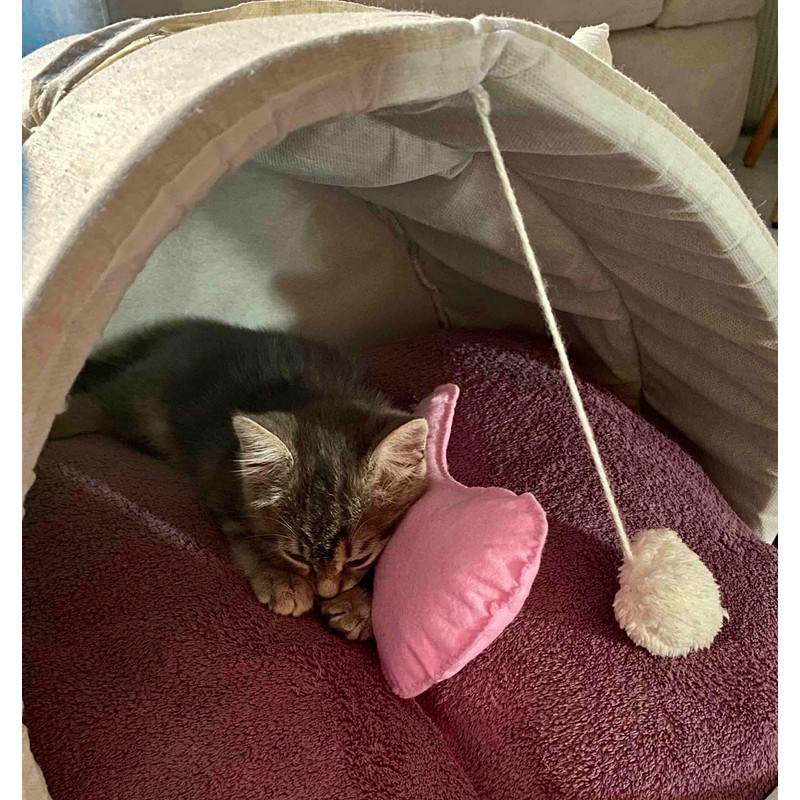 • Ebatları diğer kedi oyuncaklarından daha büyüktür. Bu sayede akıllı bıdıklar kendilerine yastık yapıp uyku arkadaşı olarak da kullanıyorlar.