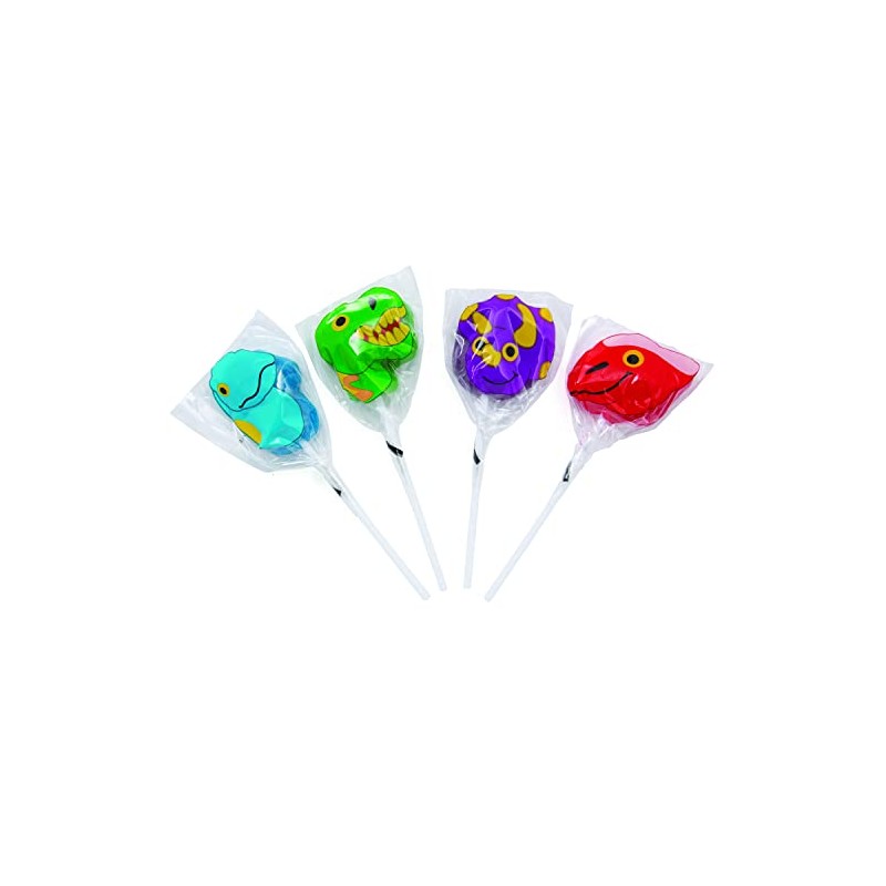 - Take a bite into huge dino-mite fun! A hit at dinosaur-themed parties, these delightfully ferocious thunder lizards are sure to put smiles on the faces of everyone around! With a dozen individually wrapped suckers in each unit you’ll have plenty to go around! Just make sure to order more before these tasty fat-free suckers become extinct!