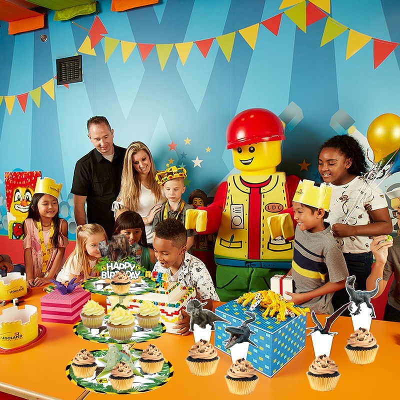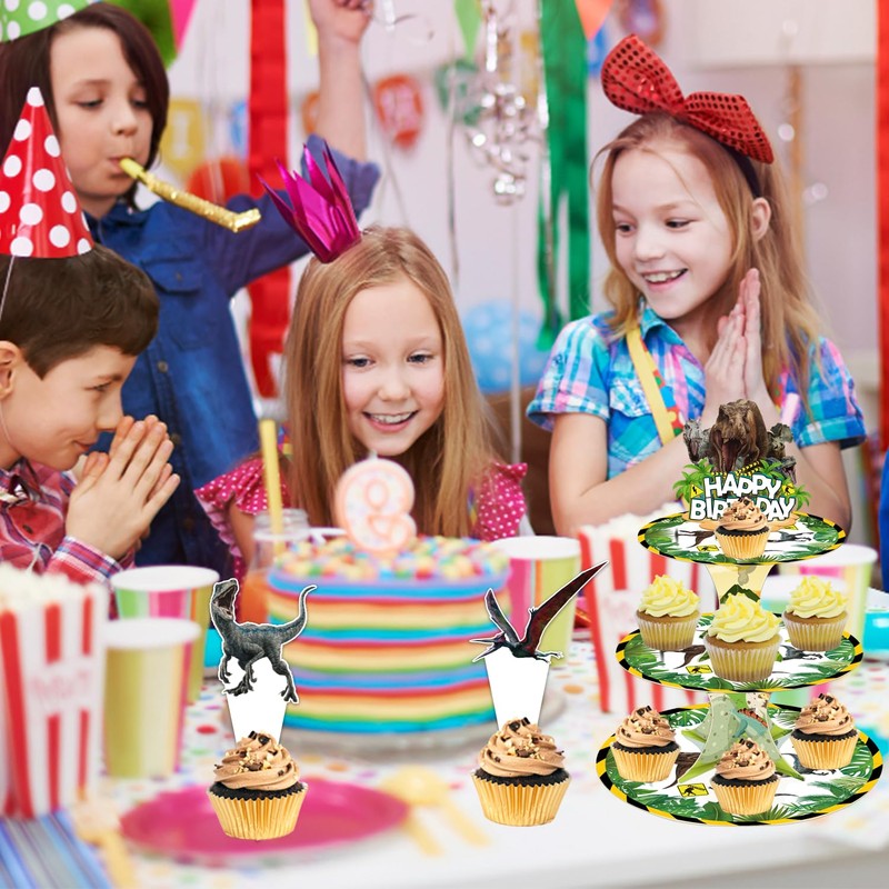 - Complete Dinosaur Party Set: Includes a 3-tier dinosaur cupcake stand and 6 dinosaur cupcake toppers, perfect for adding a prehistoric touch to your party.