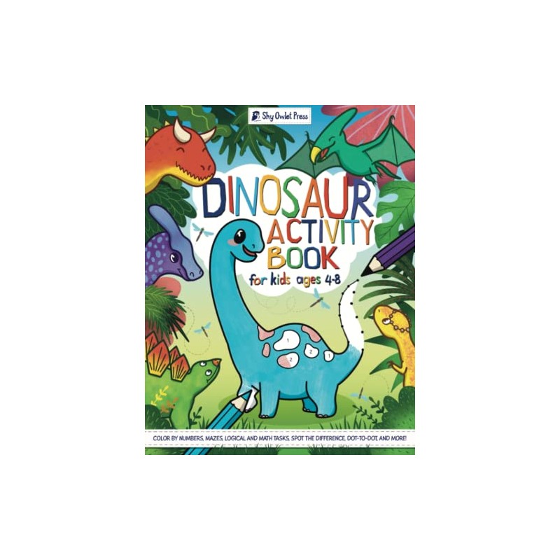 Dinosaur Activity Book for Kids Ages 4-8: Fun Games and Puzzles: Coloring by Numbers, Dot-to-dot, Mazes, Shape Recognition, Logical and Math Tasks, and Other Games!