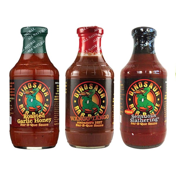 Dinosaur BBQ Sauce Variety: Wango Tango, Slathering BBQ & Garlic Honey 19 oz Bottles (Variety 3 pk)