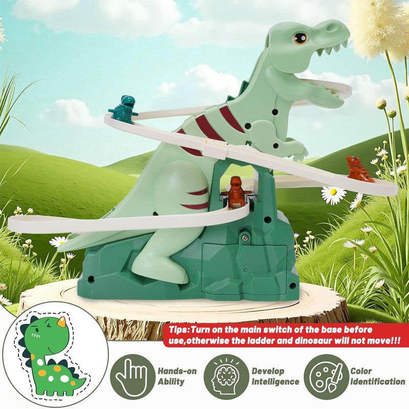 Dinosaur Climbing Slide Toy with 6 Dinos, Electric Dino Slide Track with Light and Music, Dinosaur Climbing Stairs Toy, Dinosaur Roller Coaster Toy, Dinosaur Climbing Toy