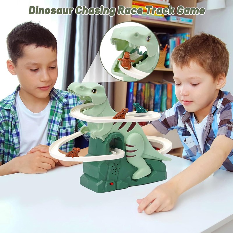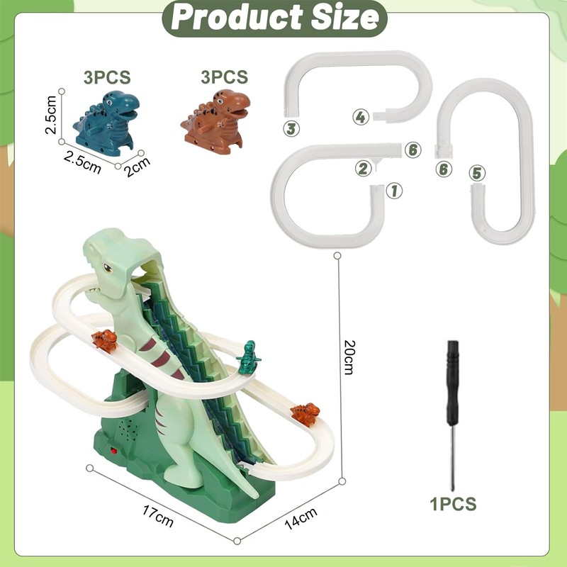 - Dinosaur slide: thanks to the easy to connect rail system, children can play with 6 cute dinosaurs. This dinosaur set for toddlers provides everything children need to develop their creativity. Dinosaurs in different colours can help children train their visual perception and develop different skills. It provides both entertainment and learning value and is very practical.