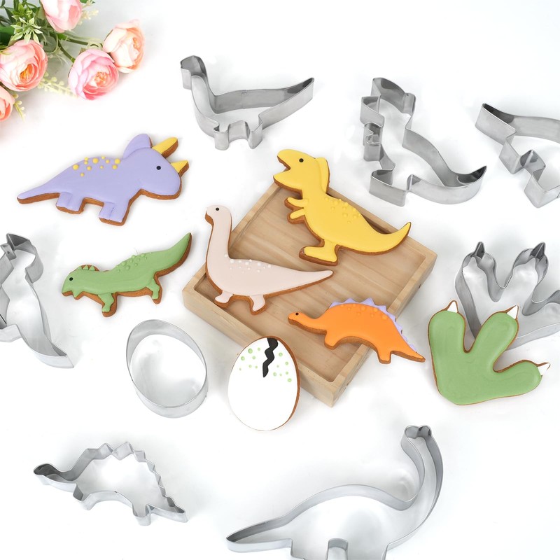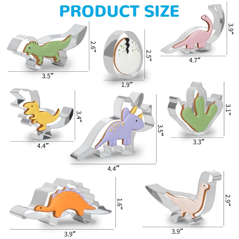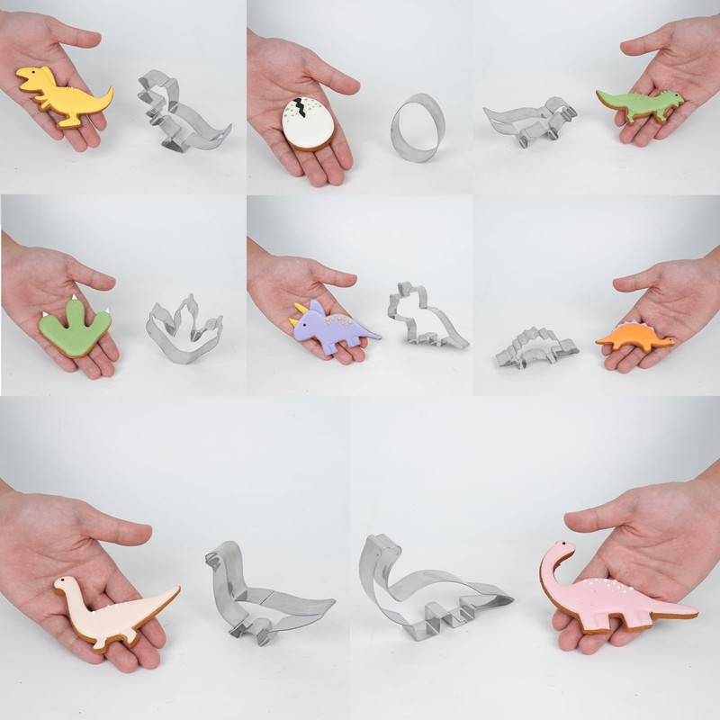 8-piece Dinosaur Cookie Cutters: Create magical moments in the kitchen with your kids using these fun and engaging dinosaur cookie cutters. Perfect for baking, crafting, and making creative sandwiches.
