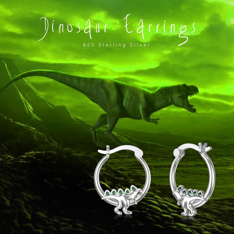Dinosaur Earrings 925 Sterling Silver Dinosaur Hoop Huggie Earrings Cubic Zir...