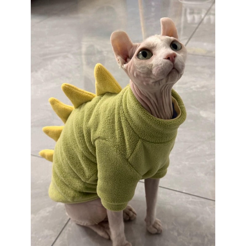 Dinosaur Sphynx Cat Clothes, Soft Polar Fleece Sweater for Cat, Elastic Pet Clothes Thick Winter Warm Outfit for Hairless Cat, Devon, Cornish, Small Dogs Apparel with Sleeves (Green, Large)