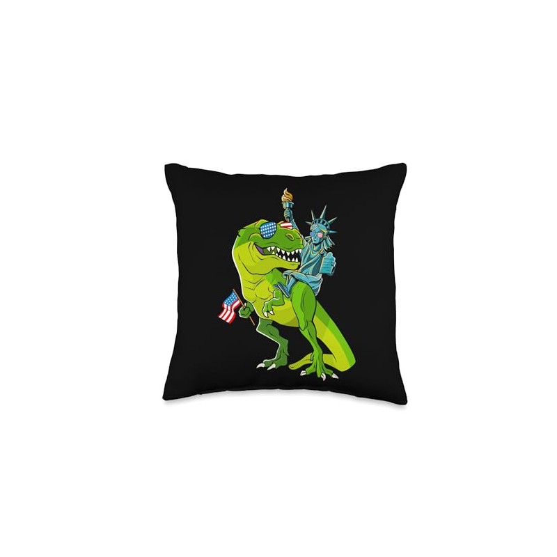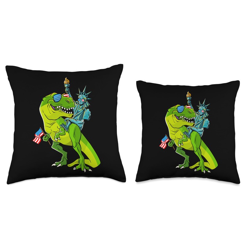 Dinosaur T Rex Statue of Liberty 4th Of July USA Flag Boys Throw Pillow