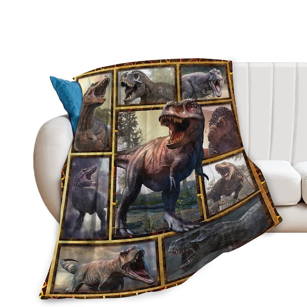 Dinosaur Throw Blanket Ultra Soft Cozy Plush Dino T-Rex Flannel Fleece Blankets Lightweight Fuzzy Warm Party Blanket for Girls Boys All Season Gifts for Bed Couch Sofa Kids Adults 50"x40"