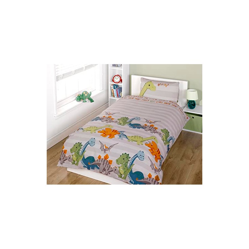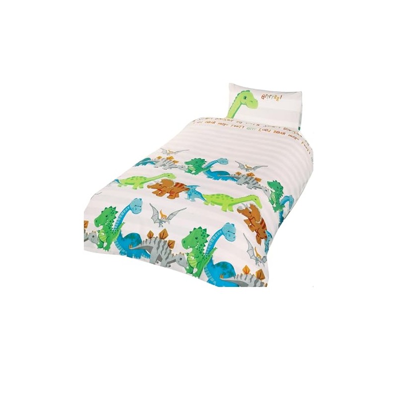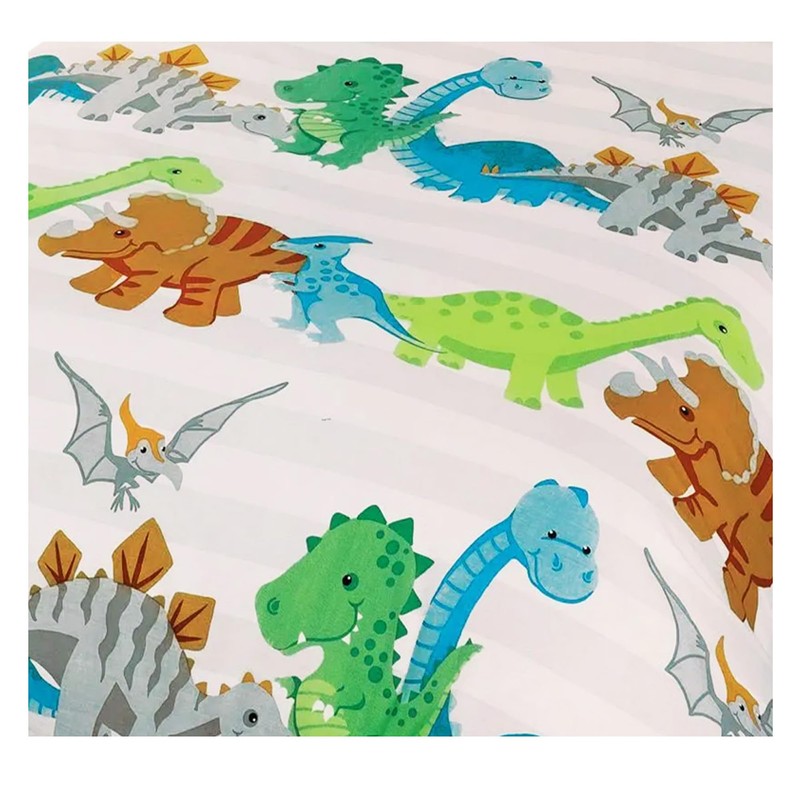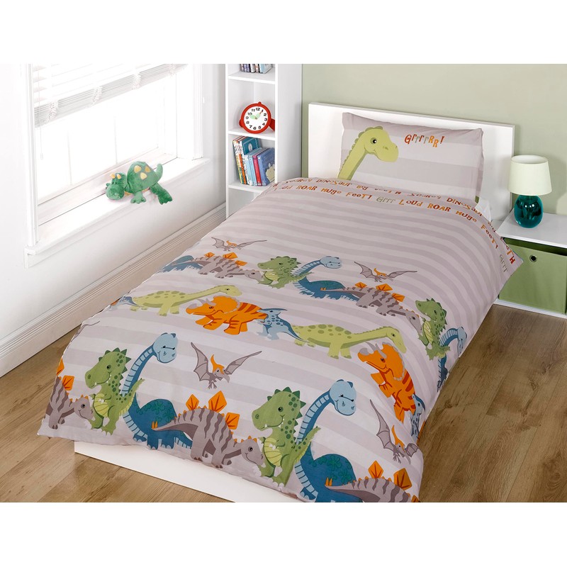 Dinosaurs Single Duvet Cover and Pillowcase Set - Natural
