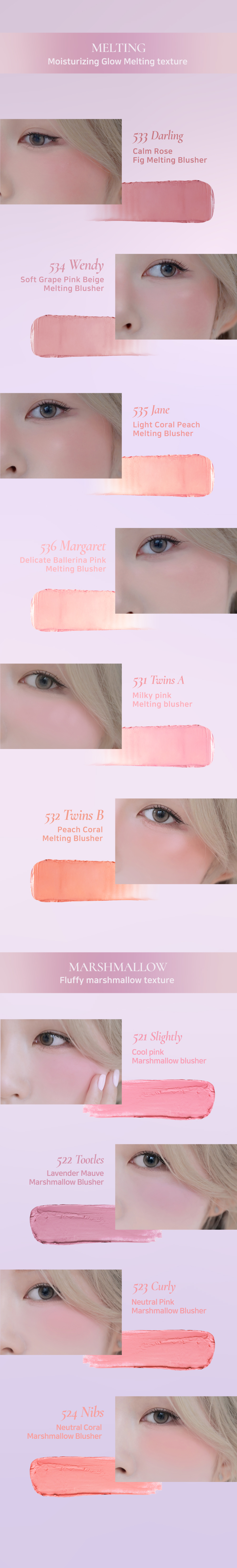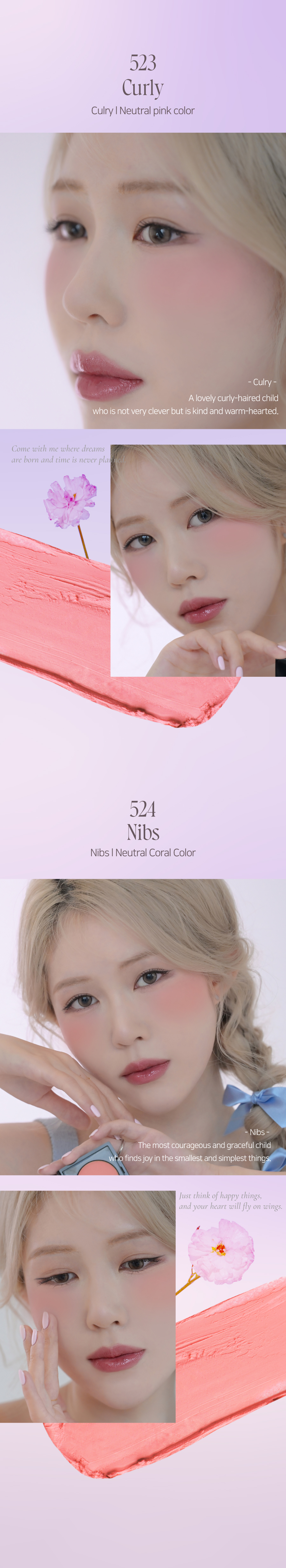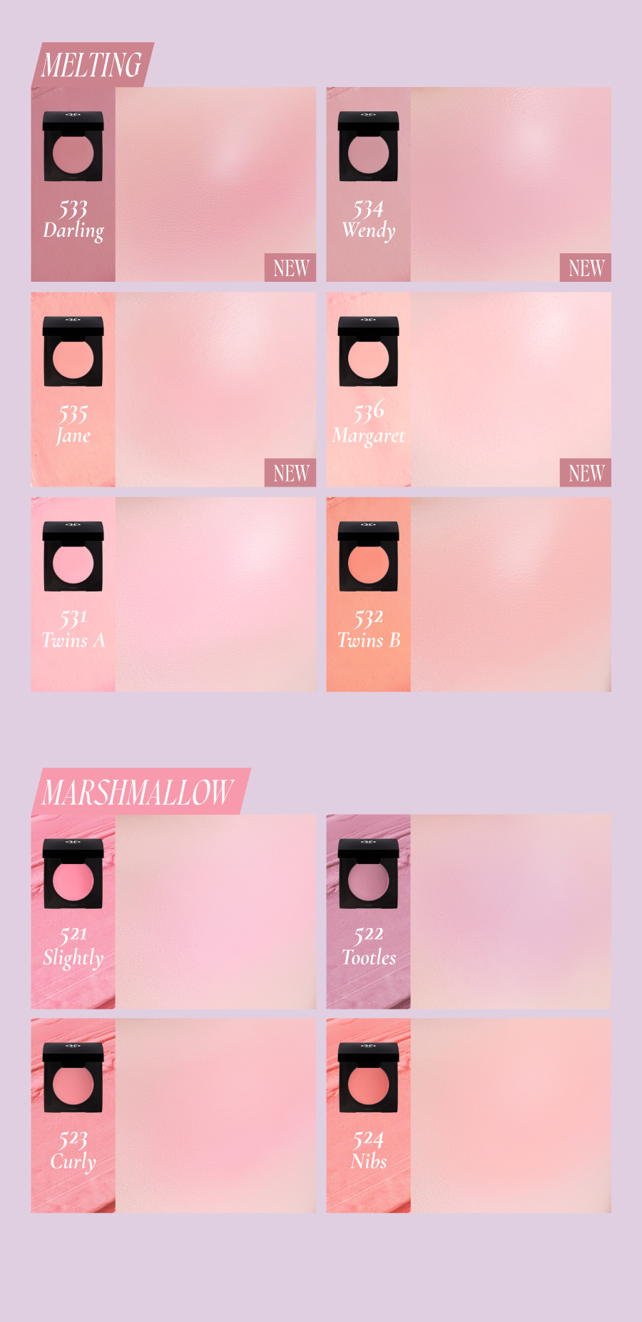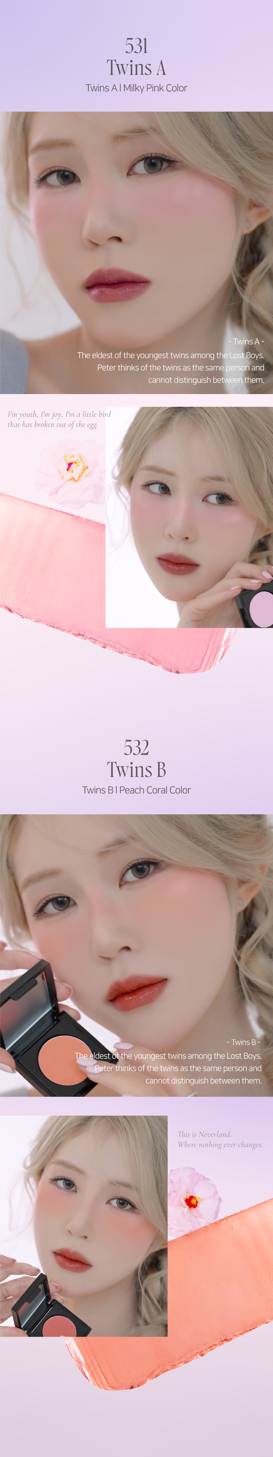 Be My Wendy Blusher collection presents 6 shades inspired by The Lost Boys in 2 different textures. The 2 textures, Marshmallow & Melting, seamlessly lay on the skin like a watercolor pigment, and ultrafine fixing powder mattifies for a long-lasting sheer build of color. Regardless of your choice of tool, this blusher easily blends without messing the base makeup, thanks to its soft flexible texture.