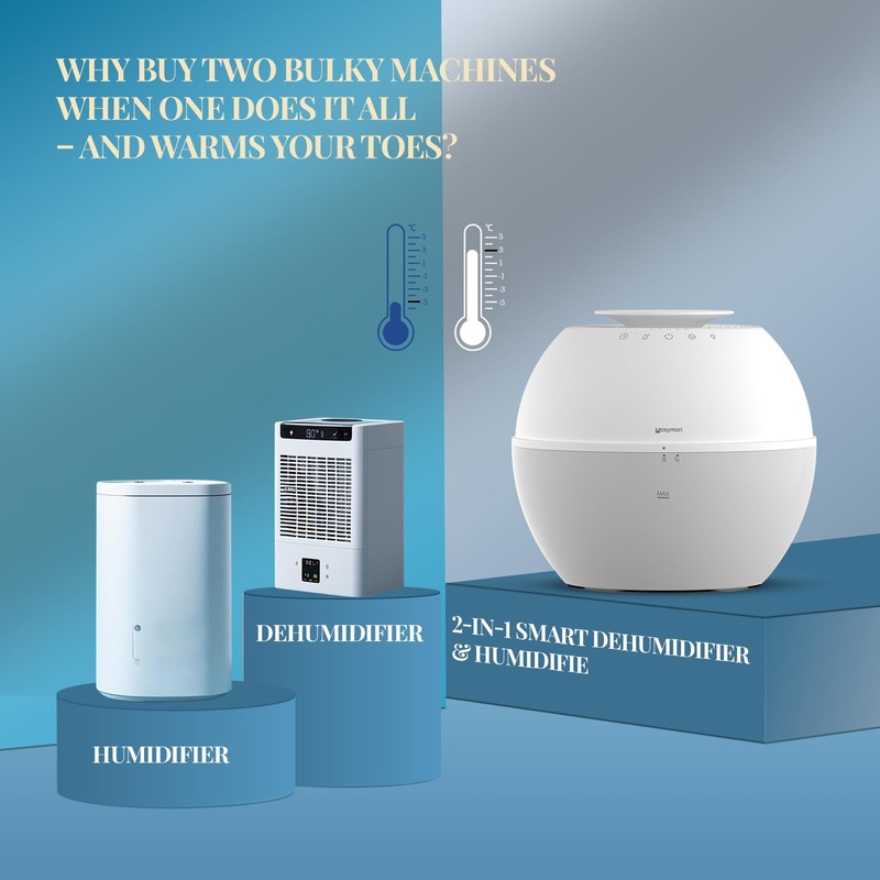 - Dual effect humidifier Dehumidifier combination It provides more even humidification, with hot steam mobility 350% stronger than ultrasonic mist, allowing it to spread more easily to every corner of the room. It eliminates the problem of traditional humidifiers wetting countertops and floors.