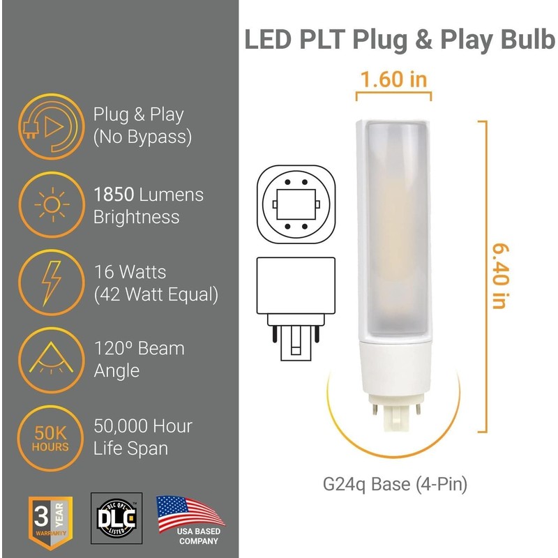 - Energy-Efficient Performance: This LED PL light bulb consumes only 16 watts of power while delivering the same brightness as a traditional 42-watt CFL bulb. It helps reduce energy costs significantly over time, making it a smart investment for both residential and commercial applications. The high lumen output of 1850 lumens ensures bright, consistent illumination suitable for a variety of indoor environments.