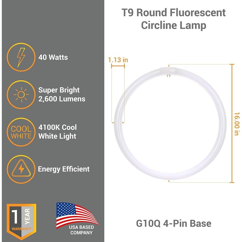 - LONG LIFE SPAN - Boasting an impressive average rated life of 10,000 hours, this T9 Round Fluorescent Circline Lamp ensures hassle-free, long-term use, minimizing the need for frequent replacements. With 2600 lumens, this T9 fluorescent lamp provides bright and consistent illumination, ensuring excellent visibility and vibrant colors in your space