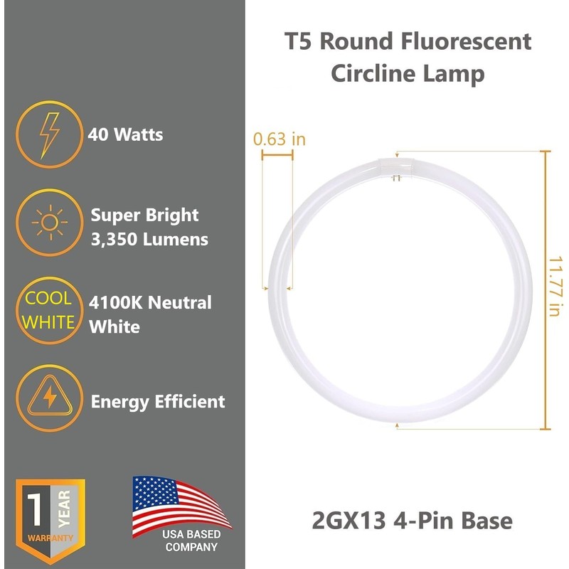 - This T5 circline bulb efficiently utilizes only 40 watts of energy to produce a cool white light.