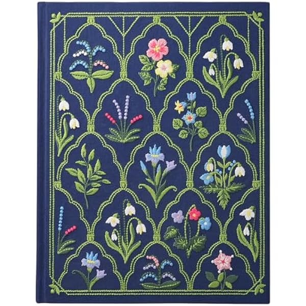 diodrio Luxury Embroidered Sketchbook for women 180gsm Premium Heavy Paper 92 Blank Pages, Keepsake Sketch Book with Floral Embroidery, 10.4" L x 8.25" W, Grosgrain Ribbon Bookmark, Lapis Blue, Size M
