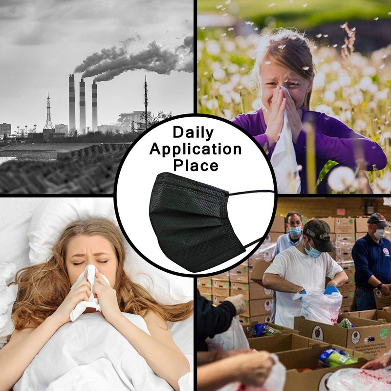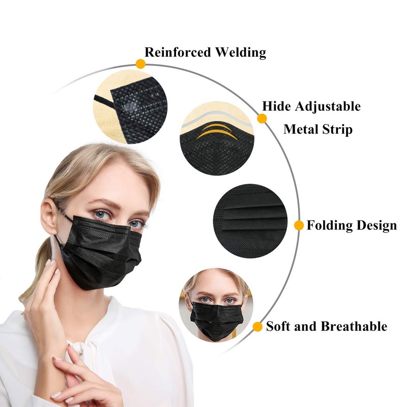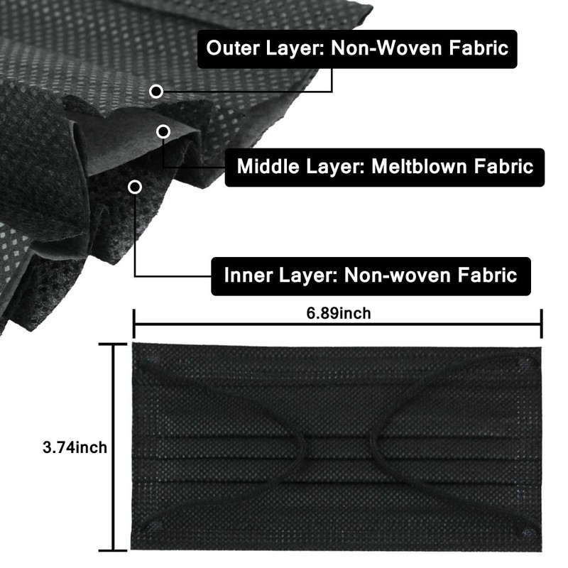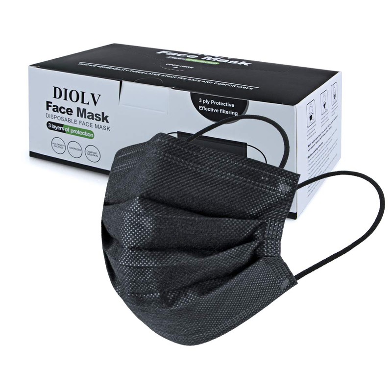 DIOLV 50 Pcs Disposable Face Mask 3 Layer Masks Black