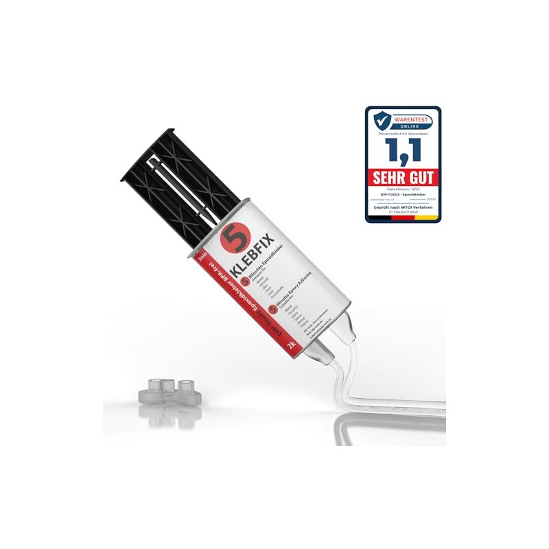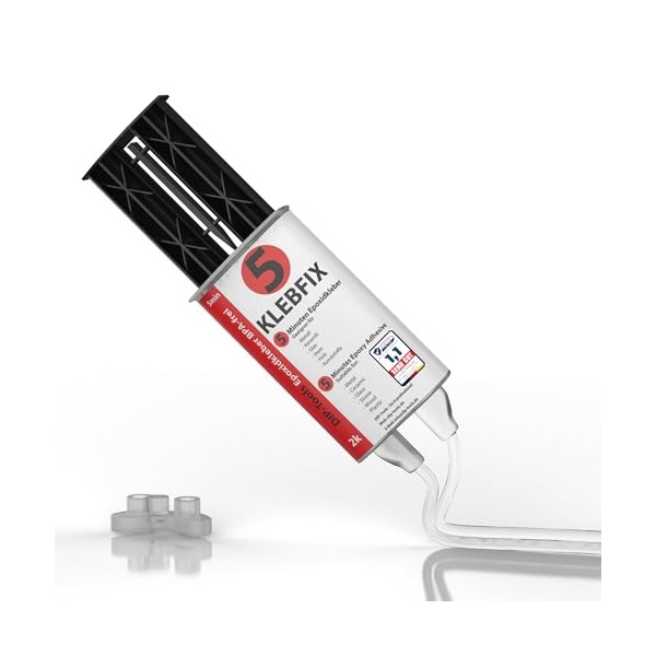 - EINFACHE DOSIERUNG: einfaches 1:1 Mischverh?ltnis durch sanftes Drcken der Doppelkammer-Spritze. Somit gleitet das Epoxidharz transparent gleichm??ig auf das Material. Da unser Kleber hitzebest?ndig und ein wasserfester Kleber ist, bietet er dir gro?en Mehrwert.