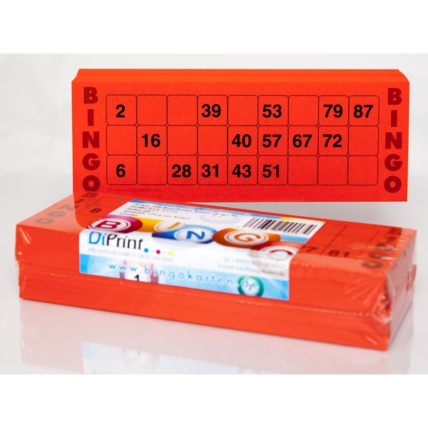 DiPrint 200 large printed Bingo cards for seniors system 15 from 90 red