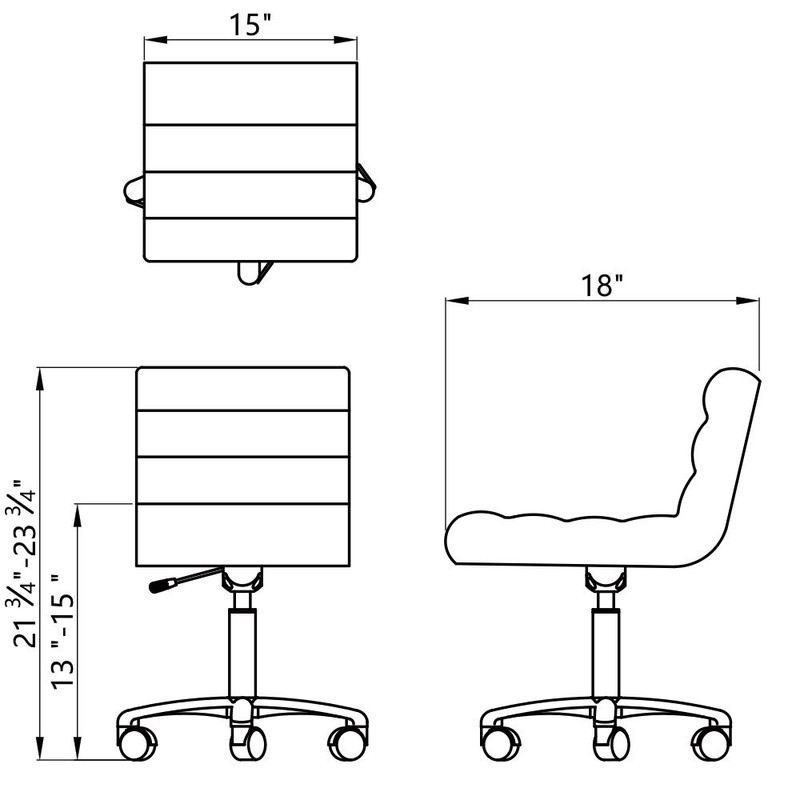 - Single lever pneumatic seat height adjustment, Max Height of seat at 15 Inches
