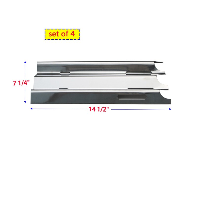- Burner Dimensions: 17" x 1"; Burner Material: Stainless Steel ; Heat Plate Dimensions: 14 1/2" x 7 1/4" ; Heat Shield Material: Stainless Steel