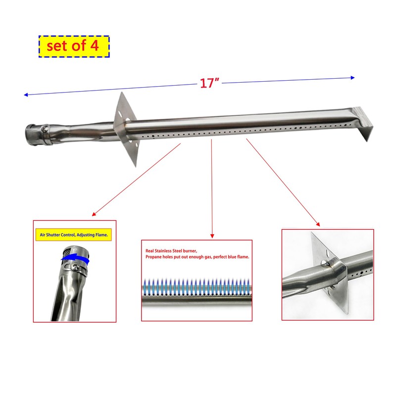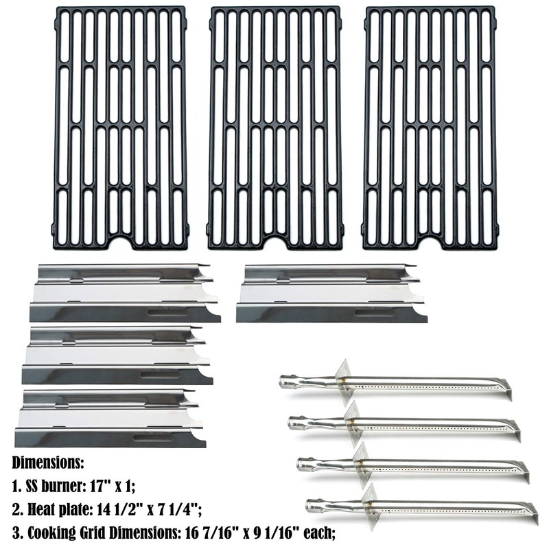 Direct store Parts Kit DG207 Replacement for select Vermont Castings grills, 17" Burner 4pcs, 14 1/2" x 7 1/4" Heat Plates 4pcs, set of 3 Cooking Grill Grids, 16 7/16" x 9 1/16" each grid