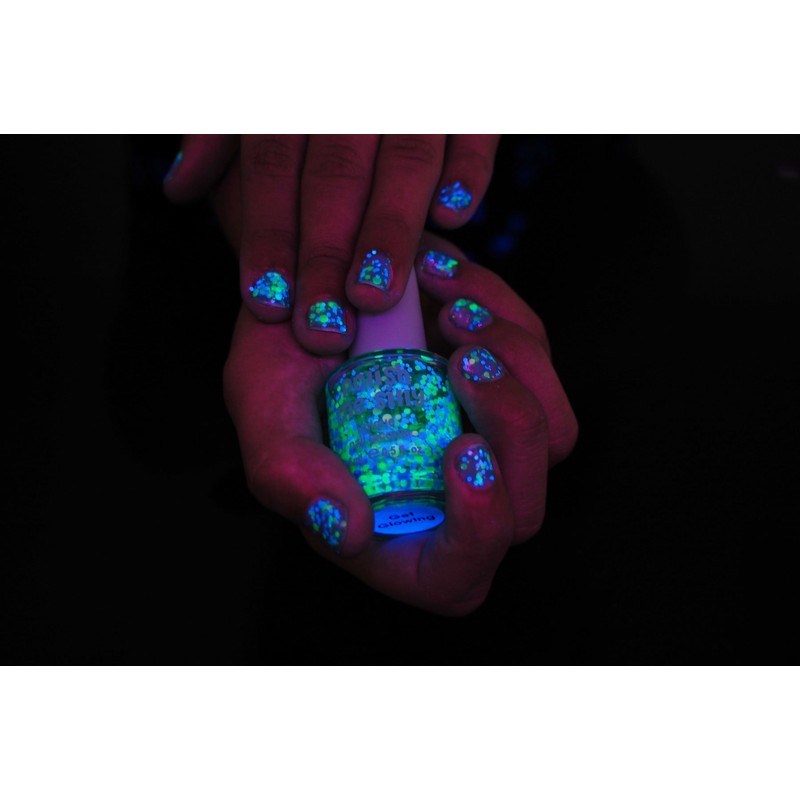 - Get Glowing is a CLEAR BASE with a mix of blue and green glitters. Glows exquisitely bright in blacklight!
