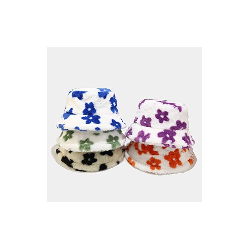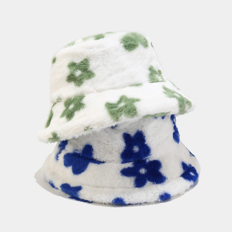 Dirholl Women's Winter Faux Fur Fuzzy Warm Bucket Hat Green Flower