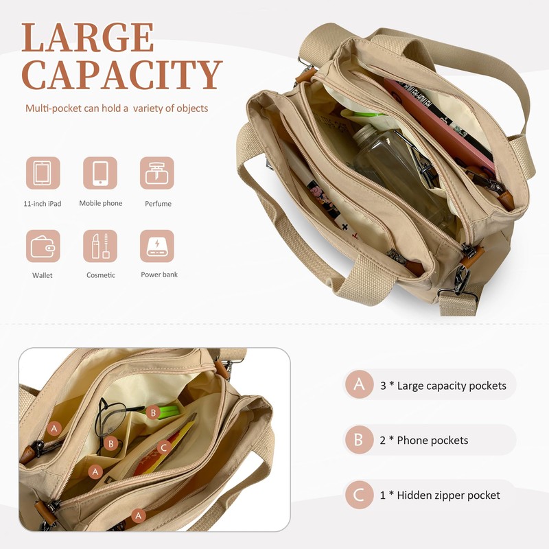 DIRRONA Fashion Women Handbag Ladies Canvas Shoulder Bag Women Bag Messenger Bag Multifunctional for Work Travel Casual Daily Female Nylon Handbags Khaki A