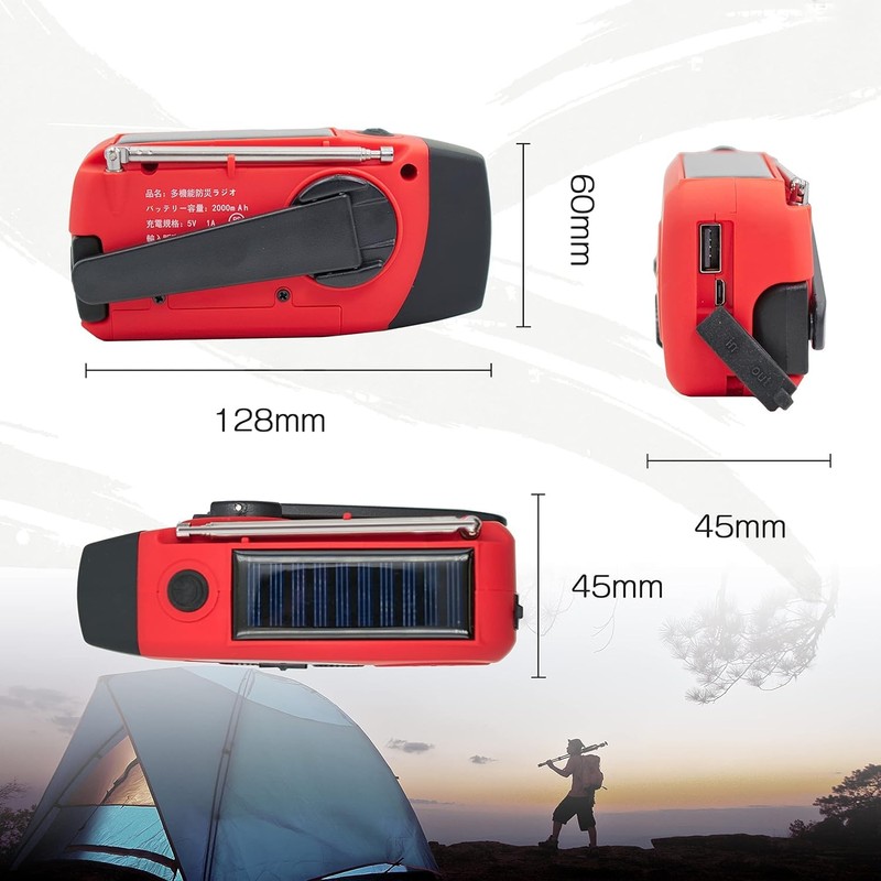 Lighting and Waterproof: This solar radio has a rechargeable light with 3 high-intensity LED lights that can be used for peace of mind. The entire exterior is bright red and will stand out even if the light is insufficient. It can bring the brightness to your family when you are in power outages or outdoors. IPX3 - Waterproof, emergency radio to prevent disasters such as typhoons, tsunamis, earthquakes, power outages, etc. It can protect your radio from splashing and light rain. However, please note that it should not be submerged in water or wet in the rain.