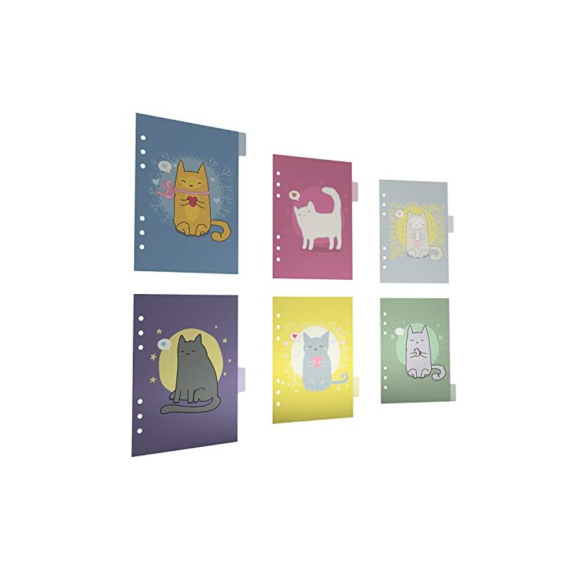 Discagenda 6 Section Dividers Plastic Durable Cute Kitten Cat for Planner Personal Organizer (A5 / Junior Size (5.8x8.3in), Ringbound)