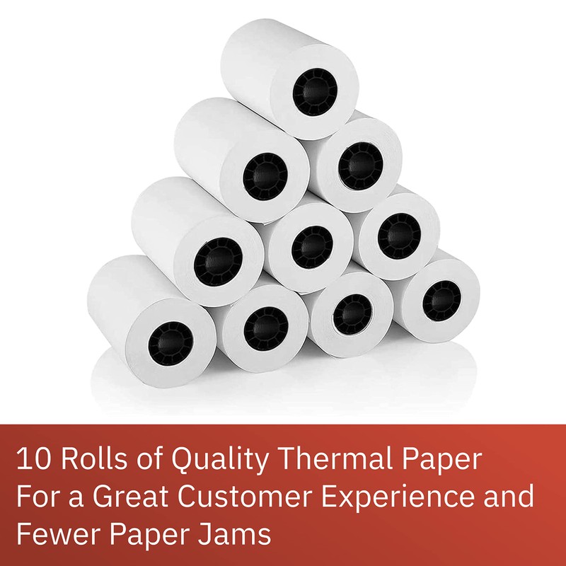 Discount Credit Card Supply DCCStands Clover Mini/Clover Mini 3 7" Swivel and Tilt Stand and 10 Roll Case of Thermal Paper 2 1/4" x 85' Bundle, White