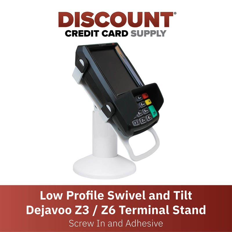 Discount Credit Card Supply DCCStands Dejavoo Z3 / Z6 Low Profile Swivel and Tilt Stand, Screw-in and Adhesive (White) - Fits Dejavoo Z6 HW # v1.3