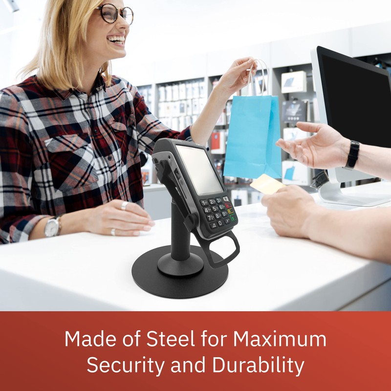 - Improve customer experience; freestanding POS terminal stand can tilt up to 60° and swivel a full 190°, making moving device from customer to merchant easier; comes with round countertop plate; also compatible with square Discount Credit Card Supply plate
