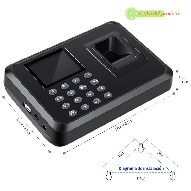 Diseleri Employee Time Clock for Business Scanner, Clocking in Machines for Small Business, Fingerprint Punch Card Machine with 2.4 TFT LCD Fingerprint Password